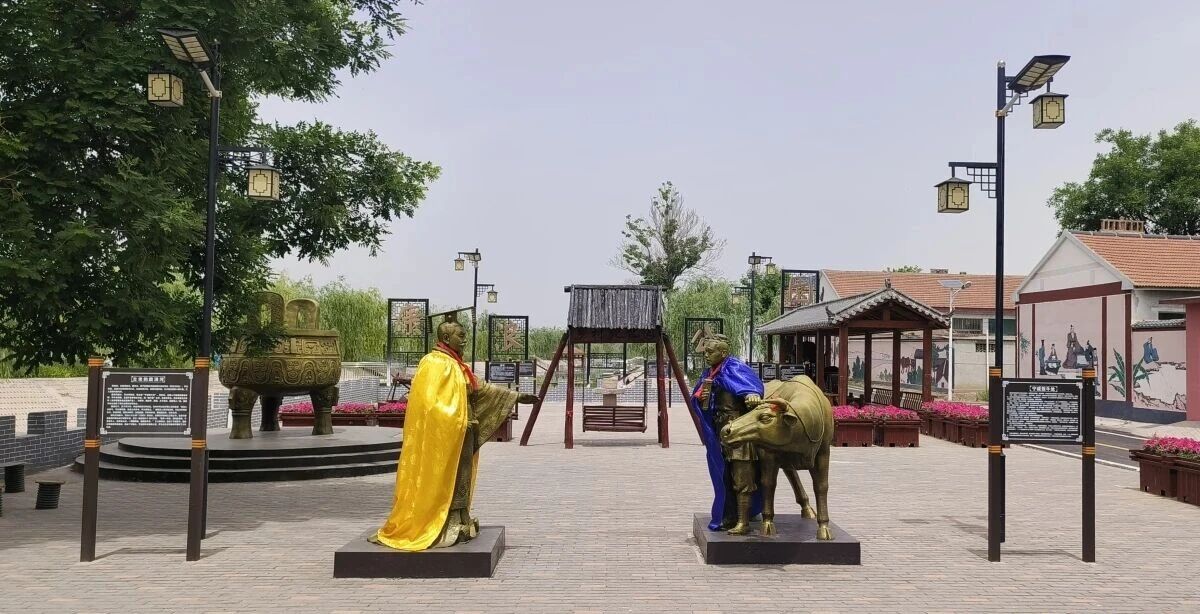 走进西河村,首先映入眼帘的是宁戚饭牛广场旁的“康浪河·谷乐园”。这座开放式、体验式的乡村记忆园,不仅复原了康浪河源头的历史风貌,竖立起齐桓公、宁戚的塑像,生动再现了“宁戚饭牛”经典场景,还集中展示了石碾、石磨、辘轳等传统农耕用具。漫步其间,村民们能勾起往昔岁月回忆,游客们也能深刻感受到齐文化的独特韵味。李振宇说:“希望历史文化能成为乡村好景最深厚的底色,让每处景观都能讲述一段故事,传递一份乡情。”