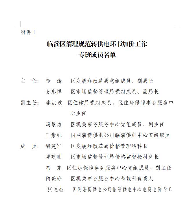 附件:1、临淄区清理规范转供电环节加价工作专班成员名单