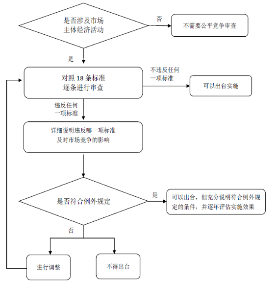 政策起草(制定)部门要建立健全自我审查机制,明确责任机构和审查程序,遵循审查基本流程(可参考附件1)开展公平竞争审查工作。要严格对照标准审查。在有关政策措施制定过程中,起草(制定)部门应当严格对照审查标准实行公平竞争审查,并形成明确的书面审查报告(可参考附件2)。书面审查结论由政策起草(制定)部门存档。未形成书面审查结论出台政策措施的,视为未进行公平竞争审查。