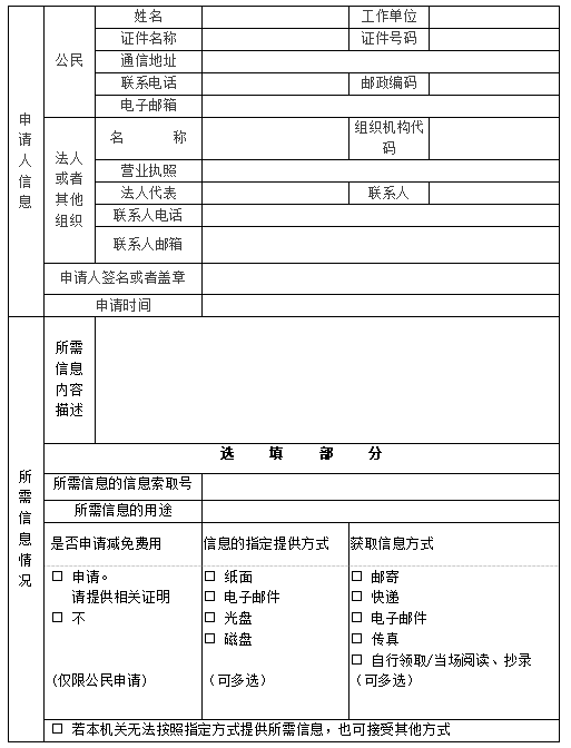 (2)政府信息公开申请表内容应真实有效,同时申请人对申请材料的真实性负责。