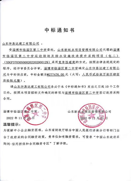 二、合同名称:淄博市临淄区第二中学排水设施改造提升项目