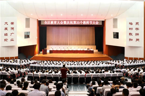 2019年9月8日,临淄区教育大会暨庆祝第35个教师节大会在临淄中学召开。会议下发了《关于全面深化新时代教师队伍建设改革的实施意见》,并就全区教育工作作了部署,在教育资源配置、民办教育培训机构管理、课后服务等问题上聚力突破。会议强调,要学好用好习近平总书记关于教育的重要论述,深入落实全国、全省、全市教育大会精神,不断增强做好新形势下教育工作的政治自觉、思想自觉和行动自觉,推动全区教育事业不断迈上新台阶,加快推进临淄教育现代化。
