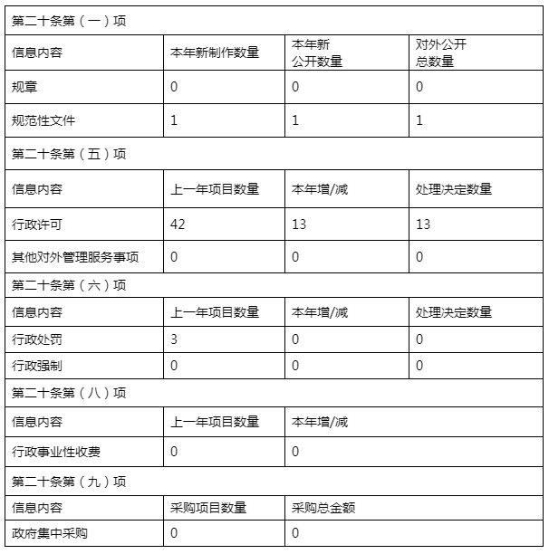 2019年,我局通过政府信息公开平台主动公布信息共130条,包括机构职能3条、业务工作63条、规划计划2条、部门公文12条、双公示16条、“双随机、一公开”11条,建议提案办理20条等,将人民群众较为关注、对社会影响较大的政府信息主动公开、主动报告。