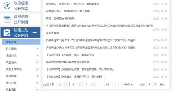 (四)政府信息公开平台建设情况。齐陵街道利用信息化手段丰富信息公开形式,打造多元信息公开渠道,以齐陵街道人民政府网站为主要平台,利用街道辖区内宣传栏、村广播、微信公众号、短视频等载体,对街道重点工作、惠民政策等及时推送,让政府信息公开工作走深、走实、走细。