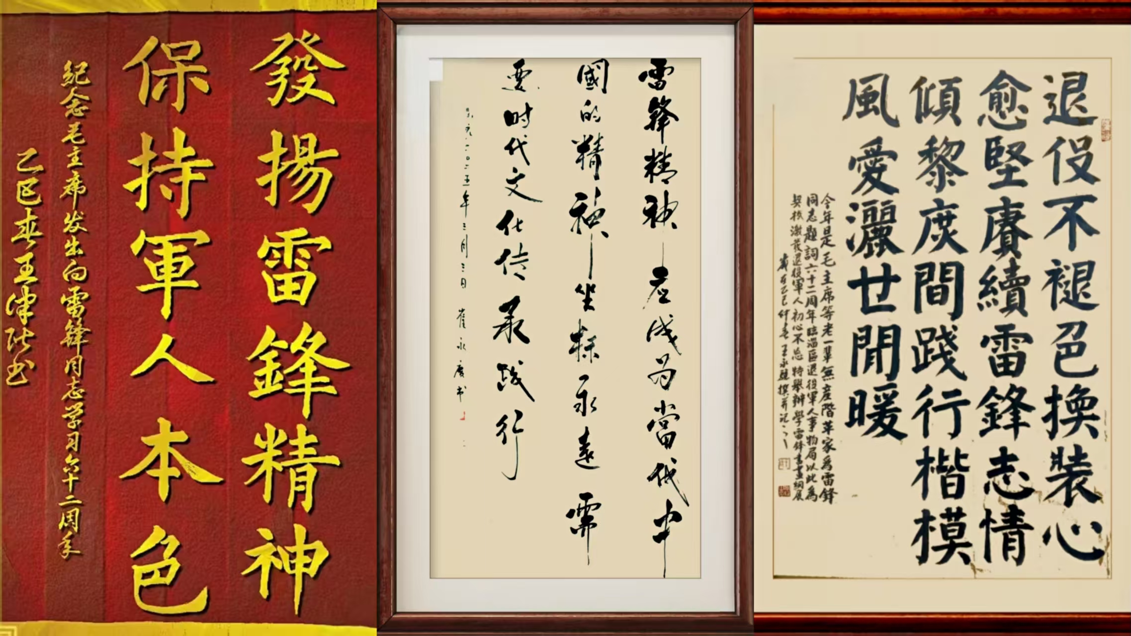 他们曾保家卫国,如今虽脱下军装,但军人本色未改。他们以书画为媒,将“忠诚、奉献、担当”的军人品格和雷锋精神深度融合,用艺术传递“服务人民、奉献社会”的初心使命。