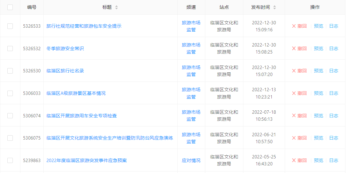 (四)平台建设方面。一是在平台专栏设置方面,主要涉及A级景区、文化活动、文化产业、文化旅游市场、非遗等文化旅游领域内容,经各业务科室提交统一在平台主动公开,确保信息的时效性、准确性。二是充分发挥“临淄文旅”微信公众号的作用,扩大信息覆盖面,进一步扩大群众对信息的知晓率。