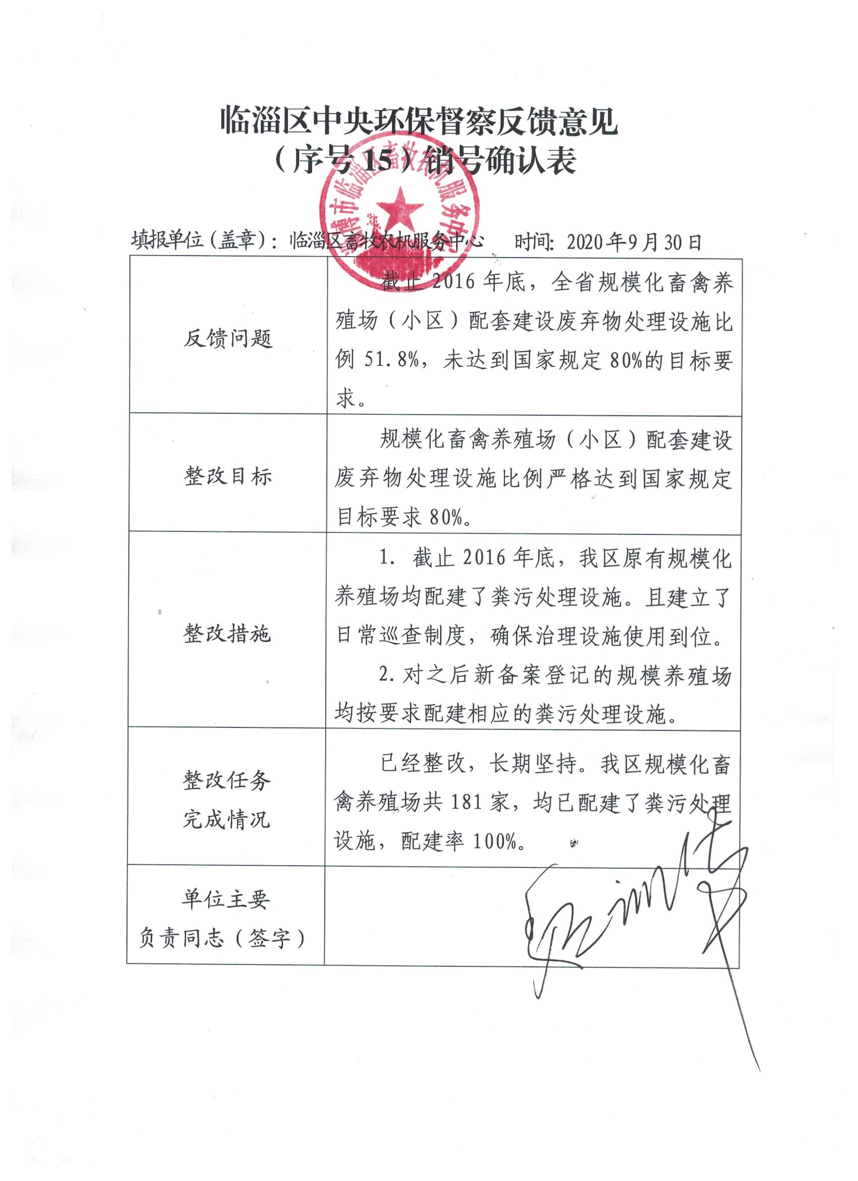 现对我区中央环保督察反馈意见(序号15)销号完成情况予以公示。